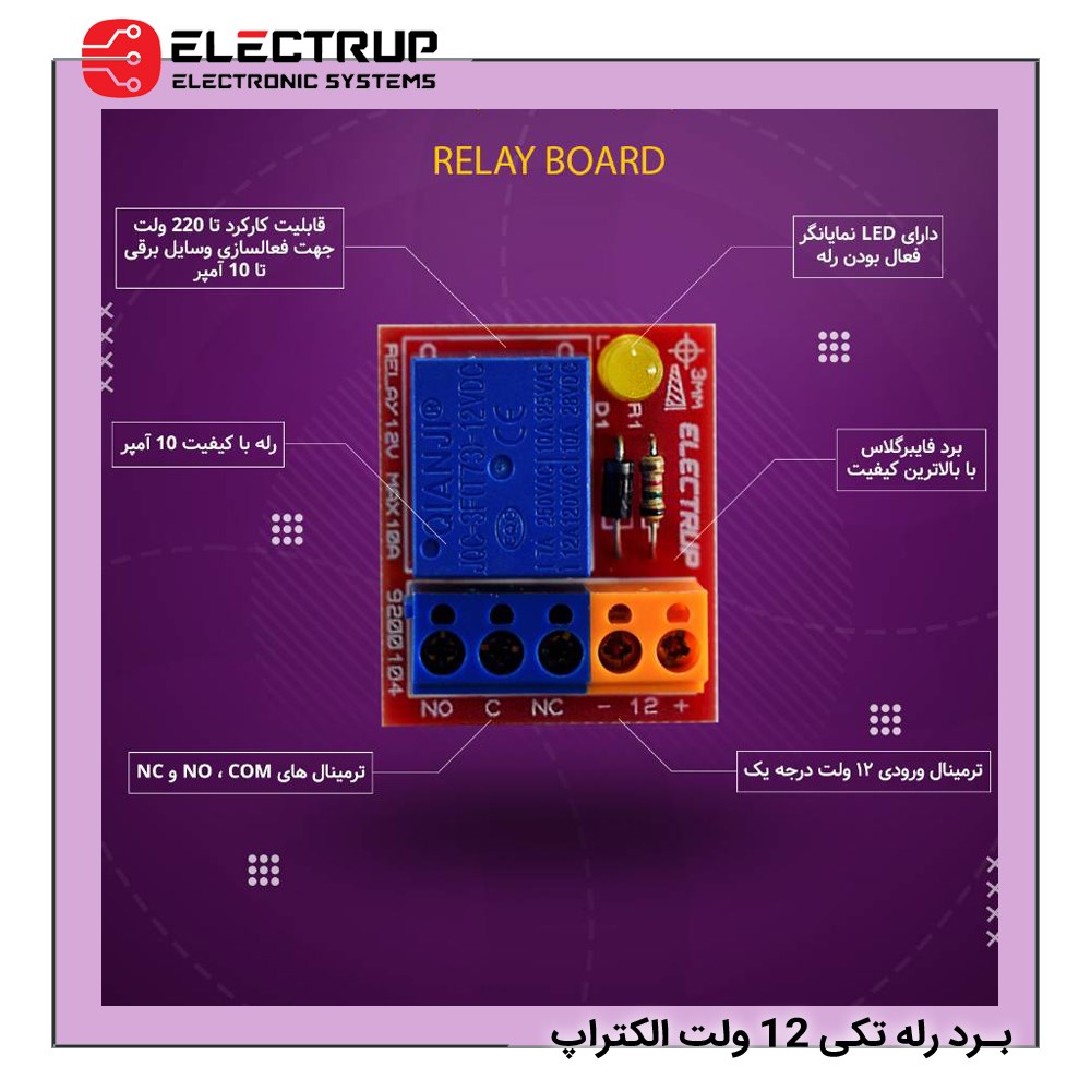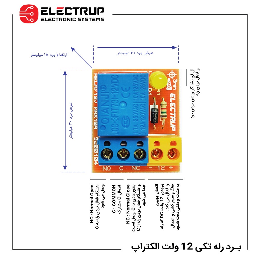 - برد رله تکی 12 ولت الکتراپ کد 9200104 (تک کانال/تک رله)