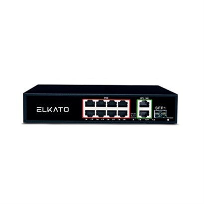 سوییچ ELKATO دارای ۸ پورت POE با سرعت 100Mps و ۲ عدد پورت 1000Mps Uplink (مجموعاً ۱۰ پورت) و با مجموع توان ۱۲۰ وات ، میباشد.